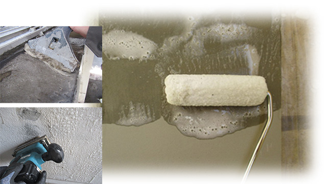 ※下地調整材はポリマー含有の薄塗(下地調整材C-1)限定となります。経年経過により、中性化、緻密化した下地調整材には剥離効果がありませんので必ず現場にてテスト確認をお願いします。